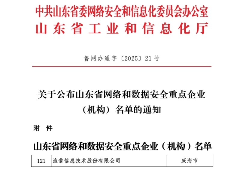 近期,山东省委网信办、山东省工信厅正式公布“山东省网络和数据安全重点企业(组织)名单”。本次评选共遴选出147家重点企业和33家重点组织,G22恒峰集团信息凭借在密码技术领域的自主创新实力、全栈式数据安全解决方案及突出的行业贡献成功入选。