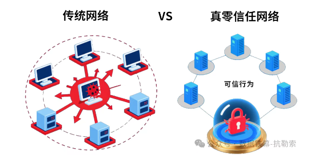 传统方案:一旦边界被突破,攻击者可在内网长驱直入,攻击的“爆炸半径”覆盖了整个网络,导致“一点突破,全网失陷”。